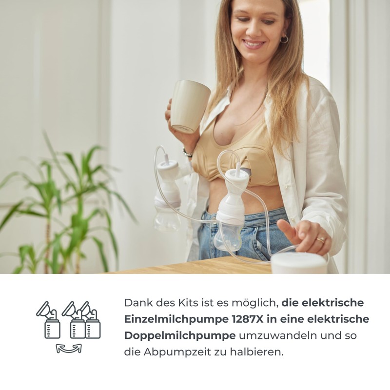 - INCREASE PUMPING EFFICIENCY Turn your Materno Smart 1287X single breast pump into a double breast pump and double milk withdrawal in less time.