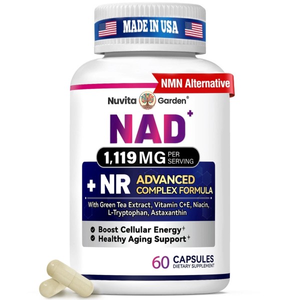 NAD+ 60 Capsules (Nicotinamide Adenine Dinucleotide), 1,119mg per Serving - Gluten-Free, Vegan