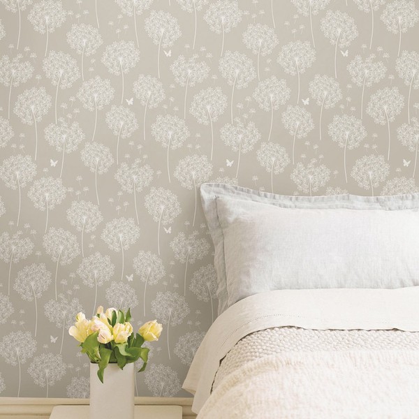 NuWallpaper NU1651 Dandelion Grey Peel & Stick Wallpaper, Neutral
