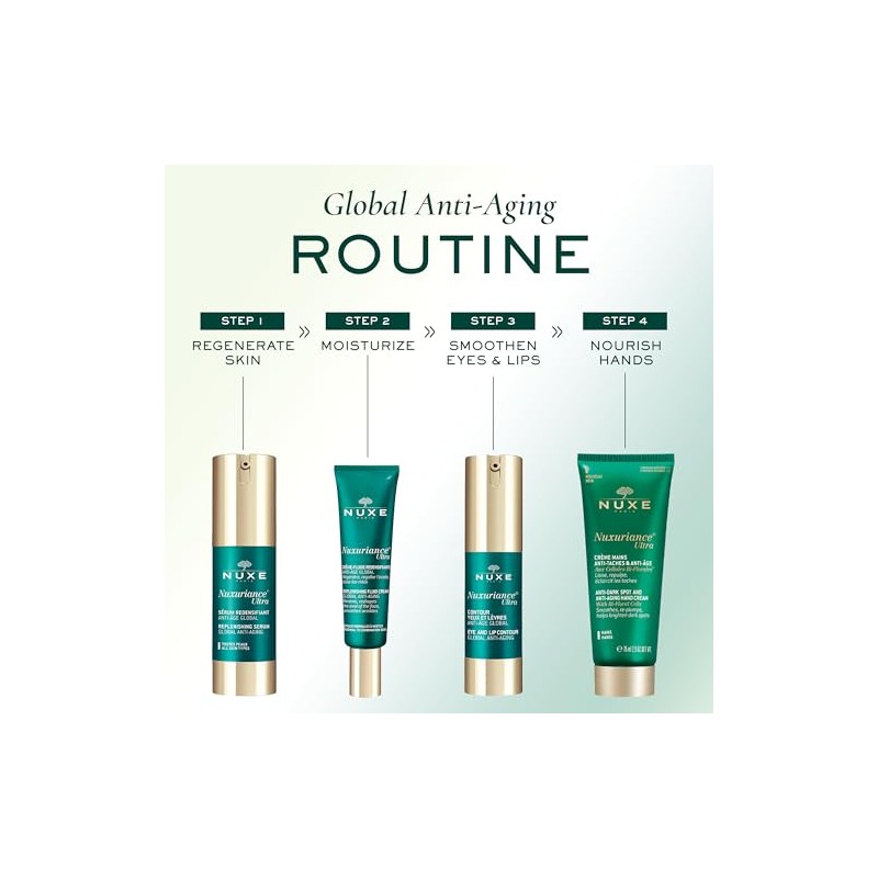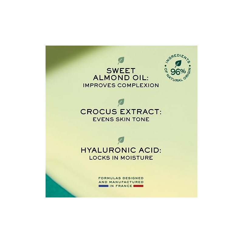 - florales de azafrán y buganvilia. Unifica el tono de la piel: extracto de azafrán blanco. 95, 2 % de ingredientes de origen natural. Cómo se usa Uso diario por el día y/o noche. Sobre la piel limpia, aplicar en rostro, cuello y escote. Seguir con una crema hidratante. para mejores resultados, complemente su rutina con los productos de la línea Nuxuriance Ultra de Nuxe. Piel madura. Todos los tipos de piel. Contenido: 30 ml.