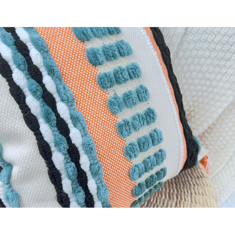 - 【Unique Design】colourful rainbow chenille striped combine 3D Geometric patterns make it so luxury and stylish.this modern accent throw pillow cover with four hand made tassels,looks so attractive,The cushion covers are great for a pop of color in any room.