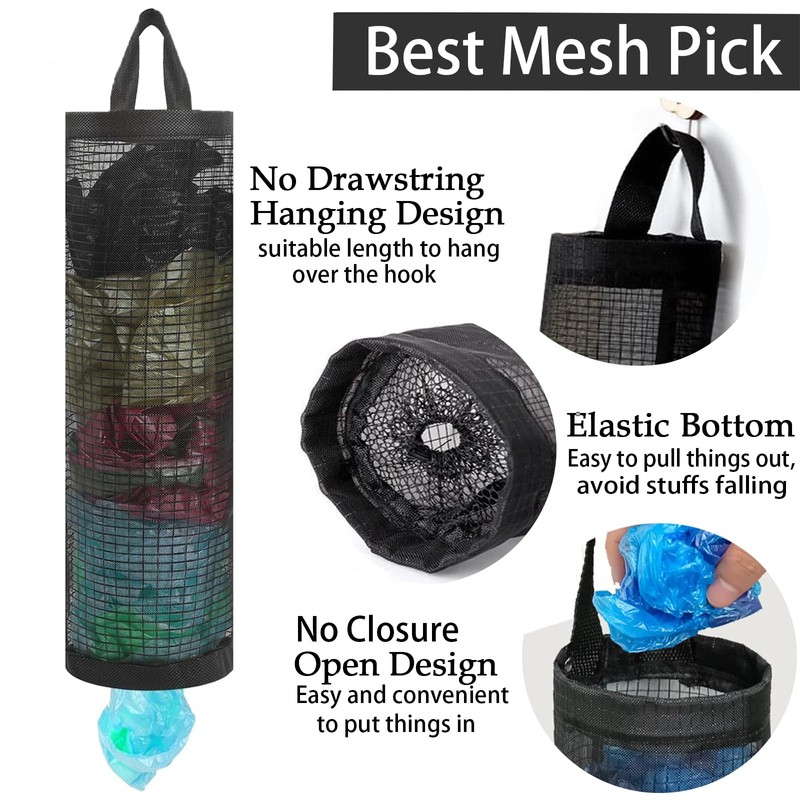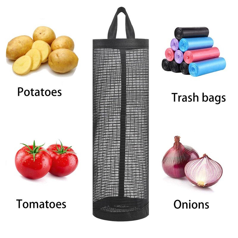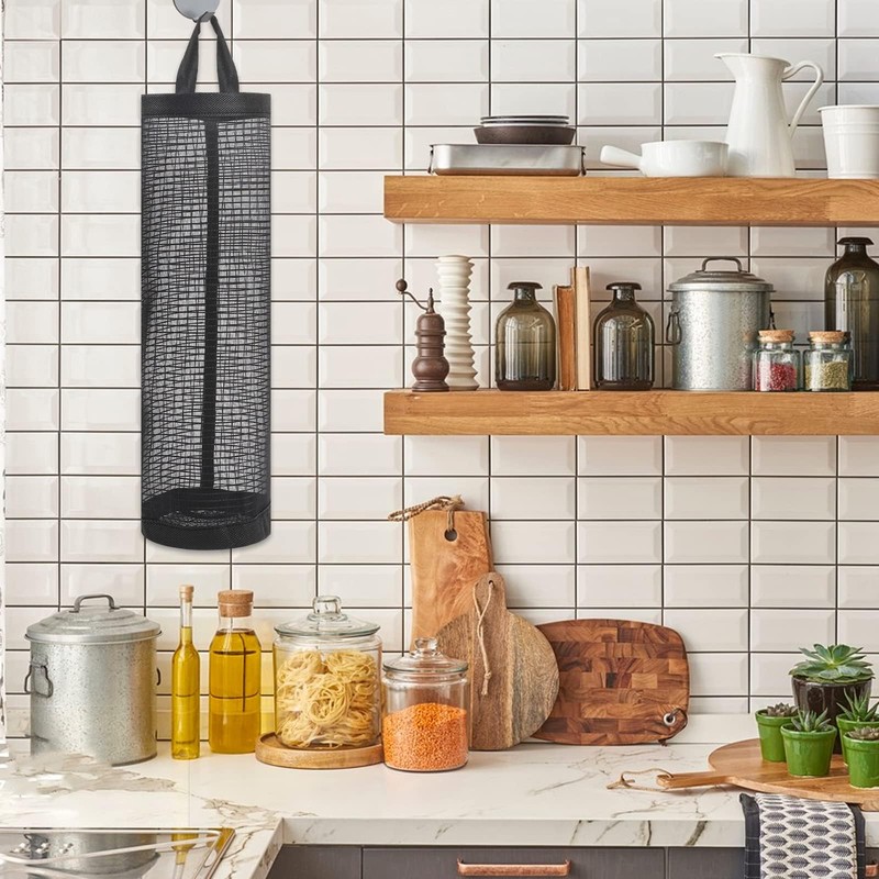 - Multipurpose: can be hung in living rooms, dining rooms, kitchens, and bathrooms, can store and reuse plastic bag dispenser, clean rags, socks, small towels and other small things, Mesh bag holder for plastic bags is great for home, kitchen, garages and pet-care areas