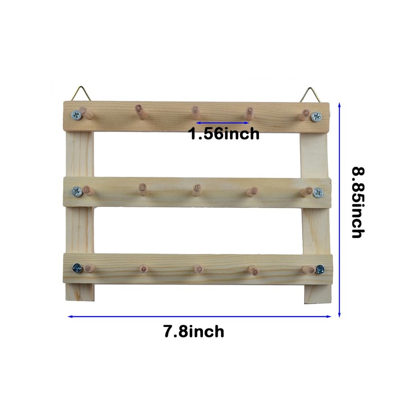 NW 15-Spools Wooden Thread Holder Sewing and Embroidery Thread Rack and Organizer Thread Rack for Sewing with Hanging Hooks