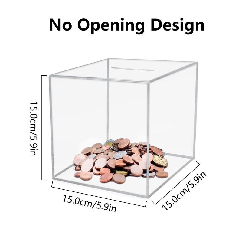 - Size: the acrylic money box measures about 6”× 6”× 6”, simple but effective design, perfect for you to save money.