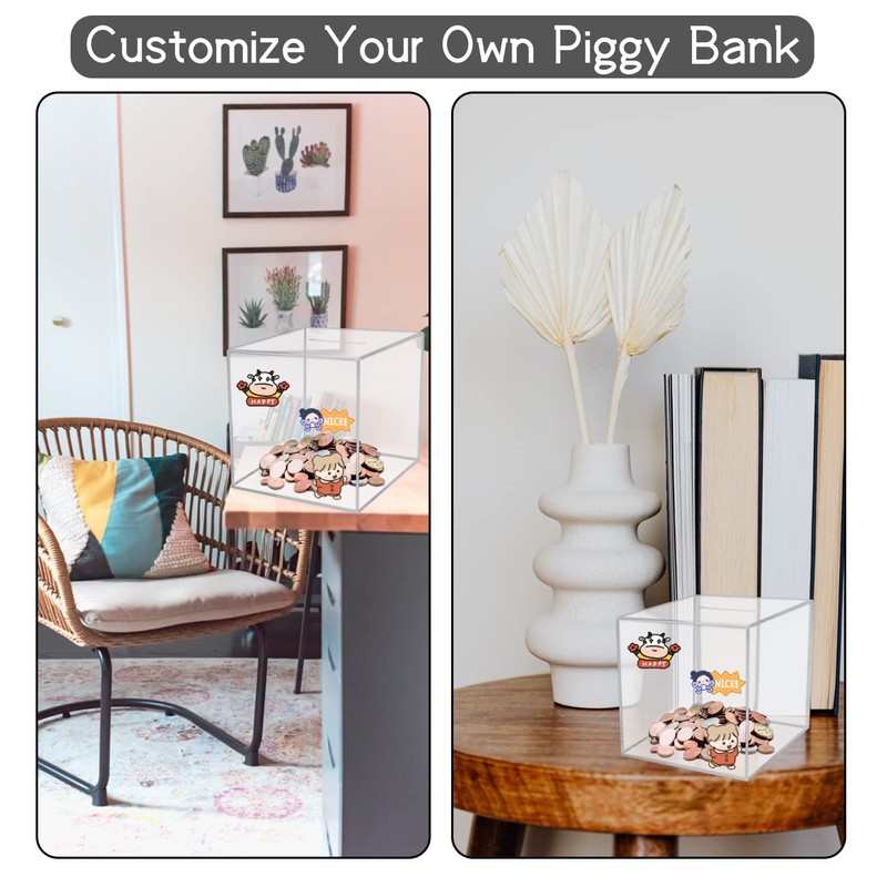 - Suitable for Adults or Kids: clear acrylic material, visually see your money grow and share in a sense of accomplishment with others. Add money to the piggy bank every chance you get and watch your funds grow. And it is also a good way to teach kids how to save money.