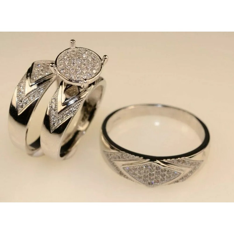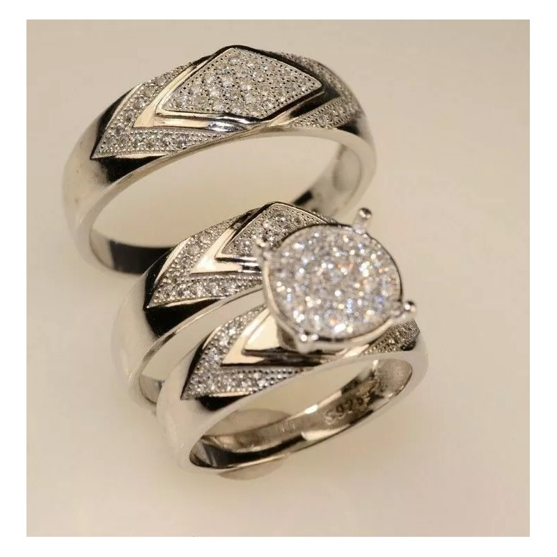 ny best White Gold Finish Engagement Ring Wedding Bands Set His and hers L 8. M 12