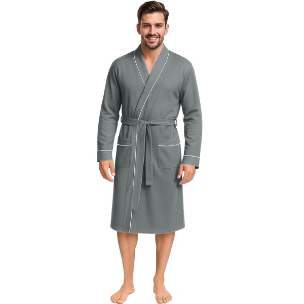 NY Threads Men's Robe Cotton Blend Knit Bathrobe, Large, Grey