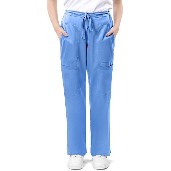 NY Threads Scrub Pants for Women, Loose Fit, Drawstring, Soft Stretch, Small, Ceil Blue