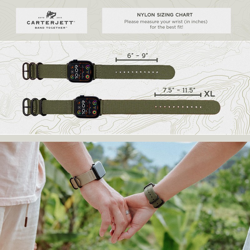 - 【Water-Resistant & Durable】Carterjett Hiking Trail Nylon Bands for Apple Watch 49/46/45/44mm are great for many activities - such as hiking, running, and outdoor activities. Ideal for adventures near or far. Take your Compatible with Nylon Apple Watch Band surfing, skiing, or swimming. Great for travel and everyday wear and tear.