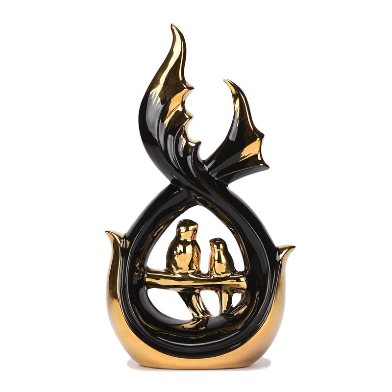 NYMYHE Modern Abstract Art Ceramic Statue with Bird Figurine White & Gold Decor for Living Room Dining Room Bookshelf Coffee Table Entrance Shop Office 11.8''(H) TQGJNY6