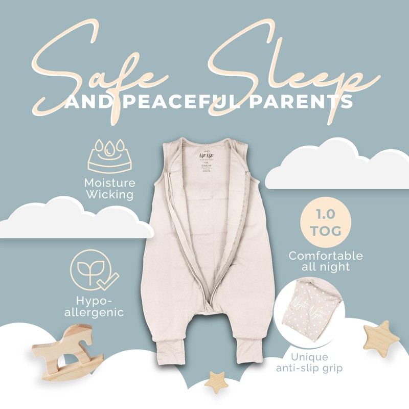 Nyte Nyte Baby - 1.-TOG Bone, XS, saco de dormir sin mangas, saco de dormir suave para bebés y niños pequeños, saco de dormir transpirable con puños ajustables y agarre antideslizante, Hueso, X-Small