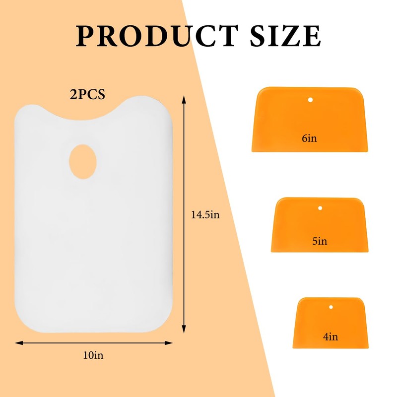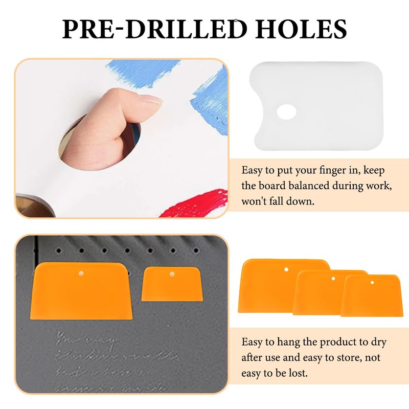 - Thoughtful Design: Each palette and scraper features hanging holes to make it easy for you to store them in an organized way when not in use. This design reduces clutter, ensuring that tools are always readily available when required, thus enhancing efficiency and convenience