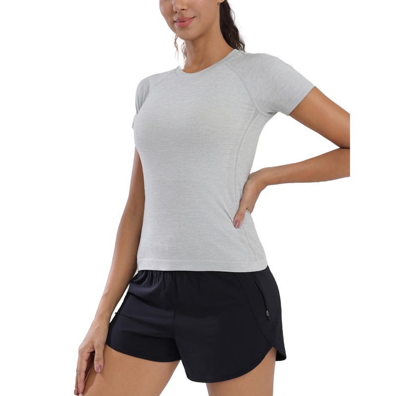 Nyvalle Seamless Short Sleeve Workout Shirts for Women Breathable Running Workout Tops Athletic Gym Yoga Basic Shirts Light Grey