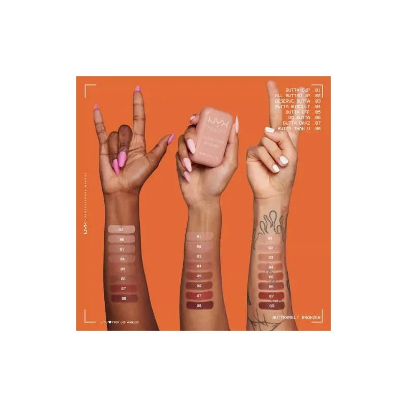 The NYX Professional Makeup Buttermelt Bronzer Butta Cup is a beautiful bronzer that combines the blendability of powder with the smoothness of butter. This provides a sun-kissed look with a natural finish that lasts up to 12 hours.
