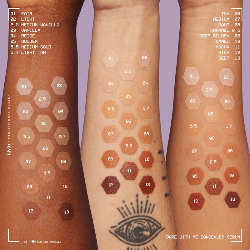 - Concealer Serum: Our first skincare serum in a concealer for under-eye, face and body, providing up to 24 hour hydration with a non-cakey, smooth, natural finish and a lightweight feel for skin that looks like skin in an instant