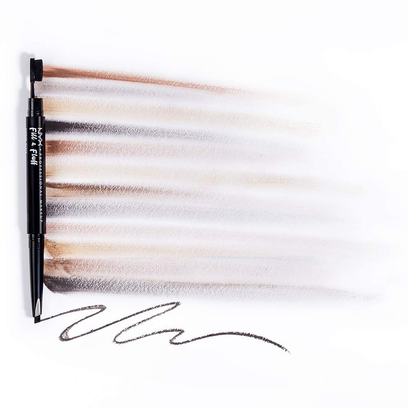 - Fill and Fluff Eyebrow Pomade Pencil: This NYX Professional Makeup brow pomade pencil features a teardrop shaped tip on one end for drawing precise eyebrow hairs, shading and filling eyebrows plus a micro paddle brush on the other for blending