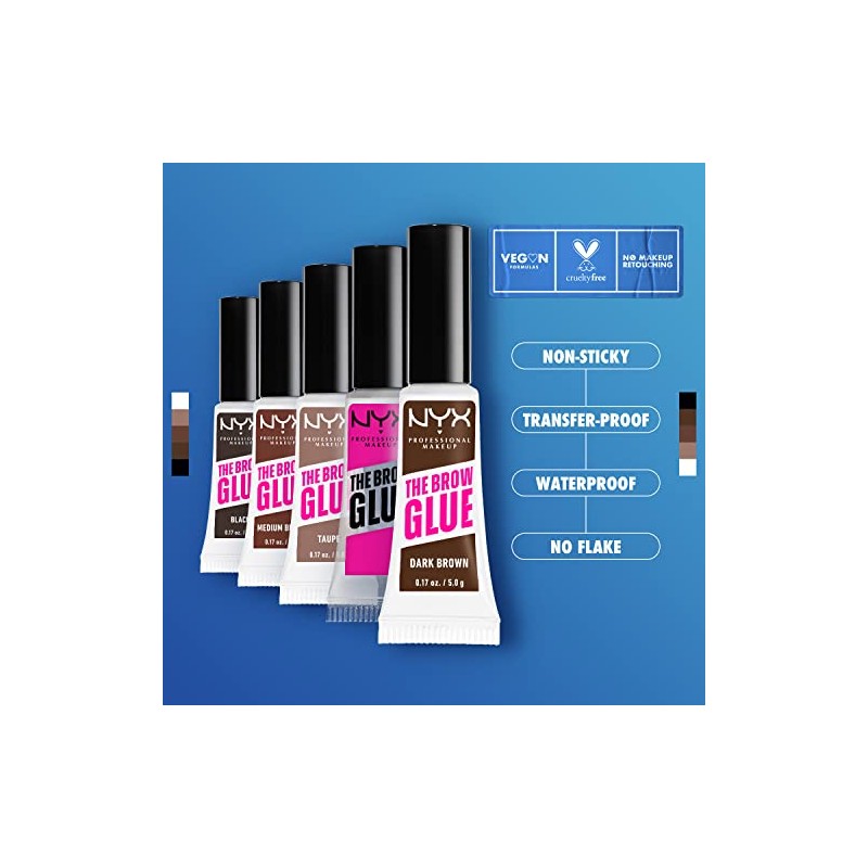 NYX Professional Makeup, The Brow Glue, 5gr. Gel fijador de cejas transparente, 16 horas de duracin, no pegajoso, sin transferencias, a prueba de...