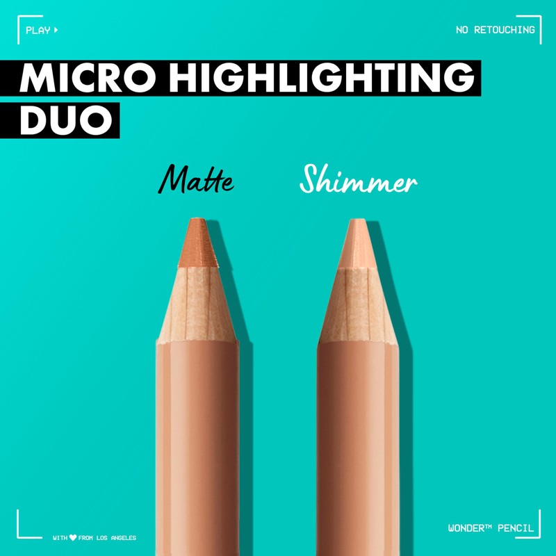 - Shape, Highlight, Conceal: This highlighter pencil does it all - a micro-highlighting duo pencil that works as an eye brightener, concealer and shaper for macro beauty hacks. With both matte and shimmer, get the best of both worlds