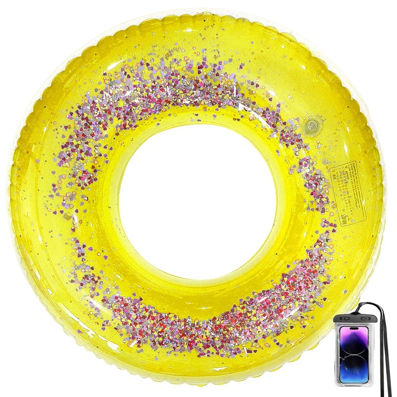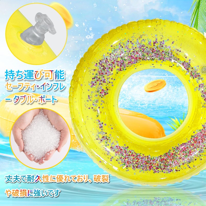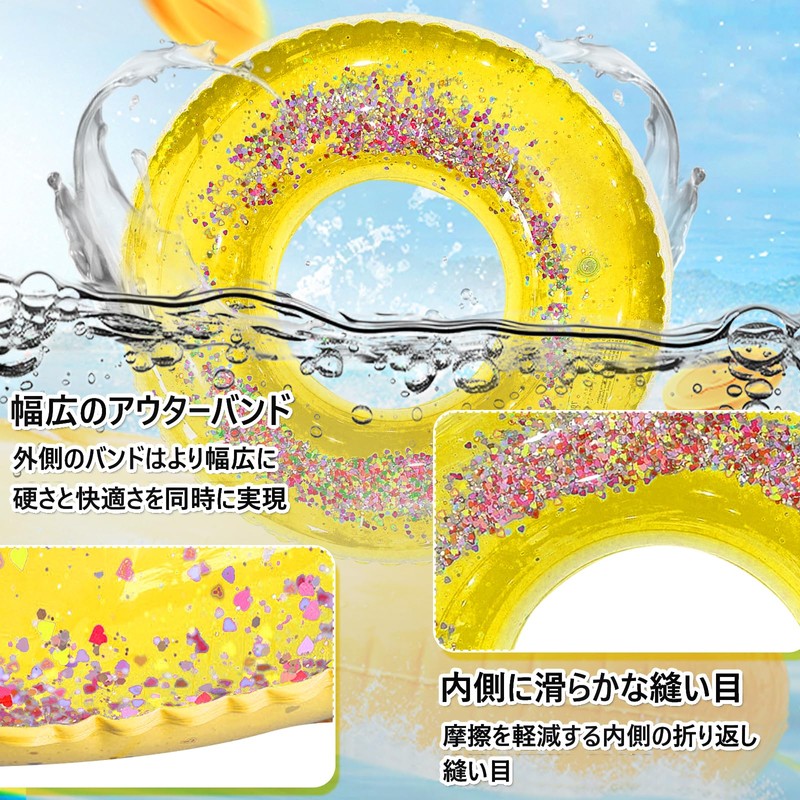 浮き輪 うきわ O型フロート浮輪 キラキラ おしゃれ 浮き具 スイミング 強い浮力 厚く 耐久性 可愛い 水遊び 日光浴 水泳 夏対策 男女兼用 空気入れ (イエロー, 80)