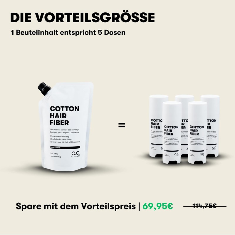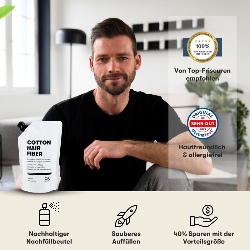 O.C. HAIRCARE Refill bag for hair thickening - for parting, bald spots on the top and back of the head - recommended by leading salons - 11 colours - resistant scattered hair