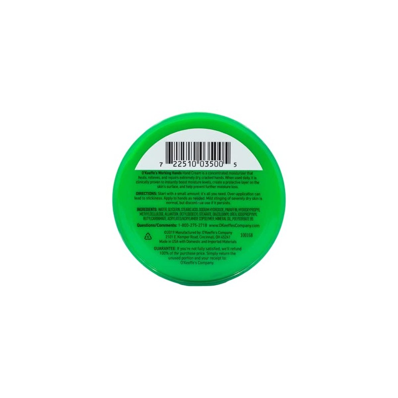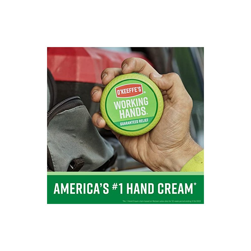 Product Description OKeeffes Working Hands Hand Cream is a concentrated, unscented hand cream that heals, relieves and repairs extremely dry, cracked hands. When used daily, OKeeffes Working Hands Hand Cream is clinically proven to instantly boost moisture levels, help prevent further moisture loss, create a protective barrier on the skins surface, and make a difference you will feel within days. OKeeffes offers a tube version of our moisturizing hand cream. Whether you prefer a tube or jar, OKeeffes Working Hands Hand Cream comes in both forms to provide relief. Click on the O'Keeffe's link at the top of this page to shop the O'Keeffe's Brand Store. GUARANTEED RESULTS OR YOUR MONEY BACK. We proudly stand behind every product we make. That's why all O'Keeffe's products have a 100%, money-back guarantee. If you are not fully satisfied, we will refund 100% of the purchase price. Please retain product and call 1-800-275-2718 for replacement product or refund. From the Manufacturer O'Keeffe's Working Hands is a highly effective moisturizer for severely dry skin that frequently cracks and splits. The odorless, concentrated formula naturally hydrates the skin, adjusting the pH balance and helping to retain moisture. Creating a difference you feel within days.