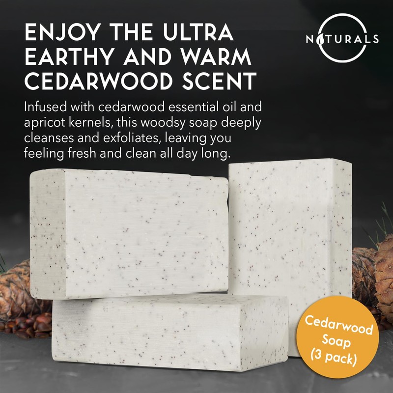 O Naturals 7.76 oz (3PC) Exfoliating Soap Bar Cedarwood - Heavy Grit Mens Soap - All Natural Exfoliation Bar Soap for Men - Apricot Kernels Bar Soap - Face Soap Bar - Moisturizing Mens Face Bar Soap