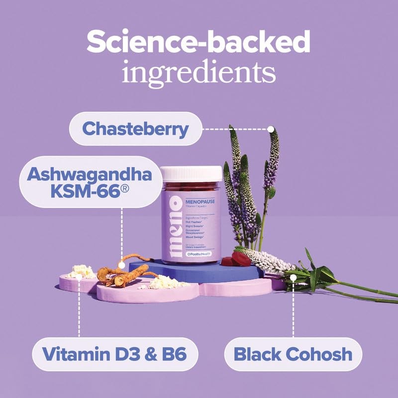 • Science-Backed Ingredients: MENO is formulated with Black Cohosh, Ashwagandha, Chasteberry, and Vitamins D3 & B6. Black Cohosh has been clinically shown to relieve hot flashes and night sweats, and Ashwagandha has been shown to support sleep quality.*