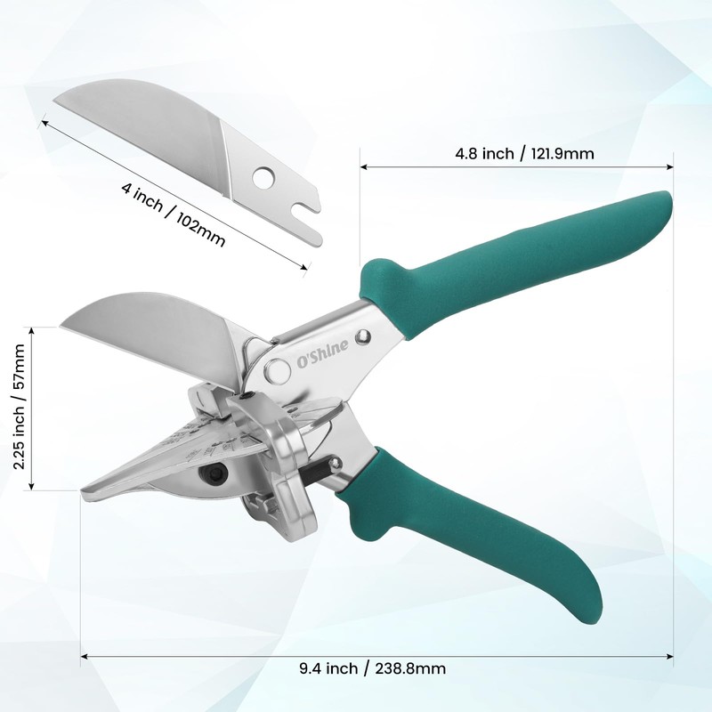 O'Shine Long Handle Miter Shears, Quarter Round Cutting Tool For Molding Wood, 45~135 Multi Angle Shoe Molding Cutters, Trim Cutter Hand Tool For Angular Cutting Moldings Crafting, w/ 1pc Extra Blade