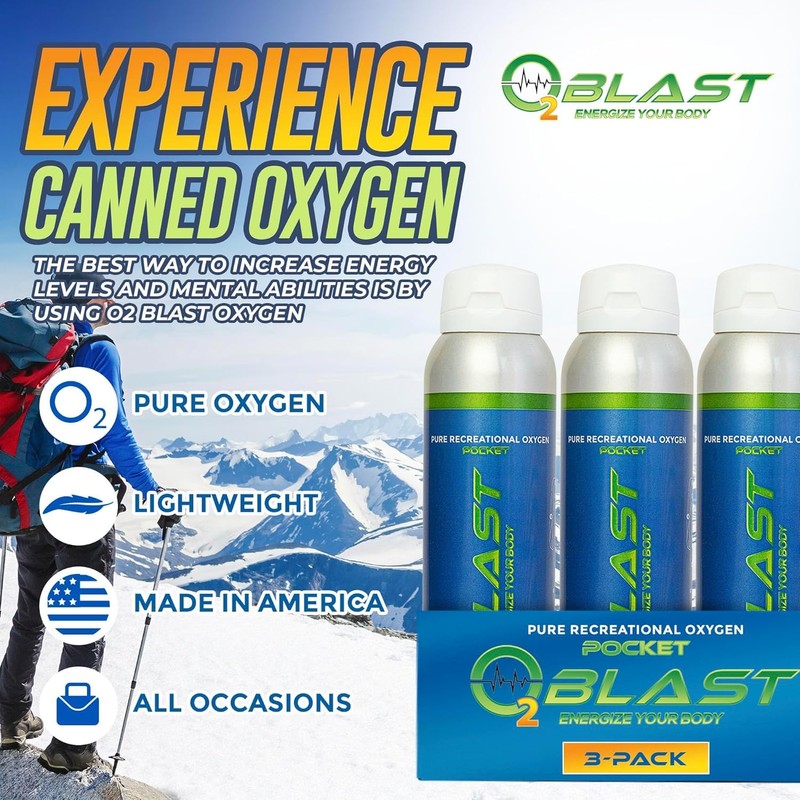 - ALL OCCASIONS - Portable oxygen is well known to restore your oxygen levels at high altitudes, but O2 BLAST can be helpful for any active, daily task. Whether you are suffering from jet lag, working late, taking a long drive, working out or recovering from a late night out, keep an O2 BLAST canister close by.