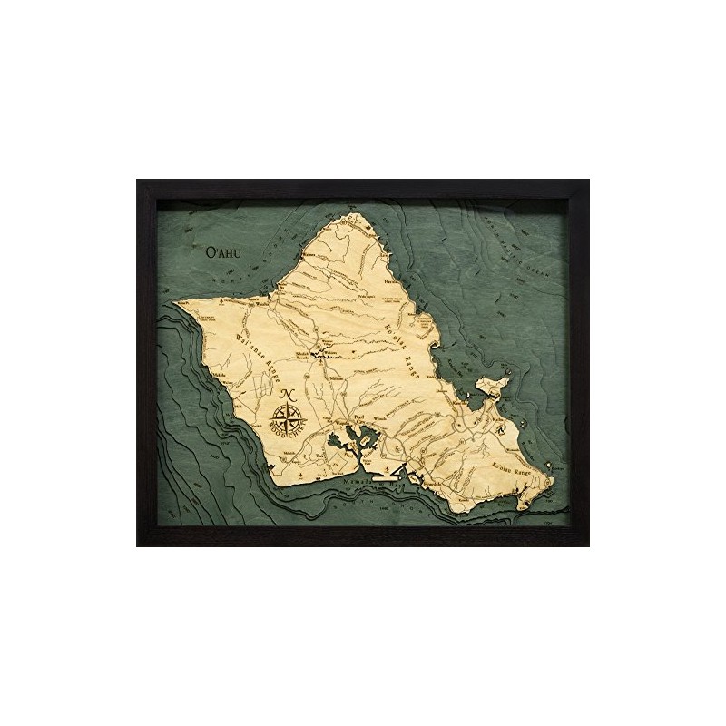 - Show off your love of Oahu. This engraved topographic map offers a unique and beautiful way to display the places you love with a Framed piece of wall art