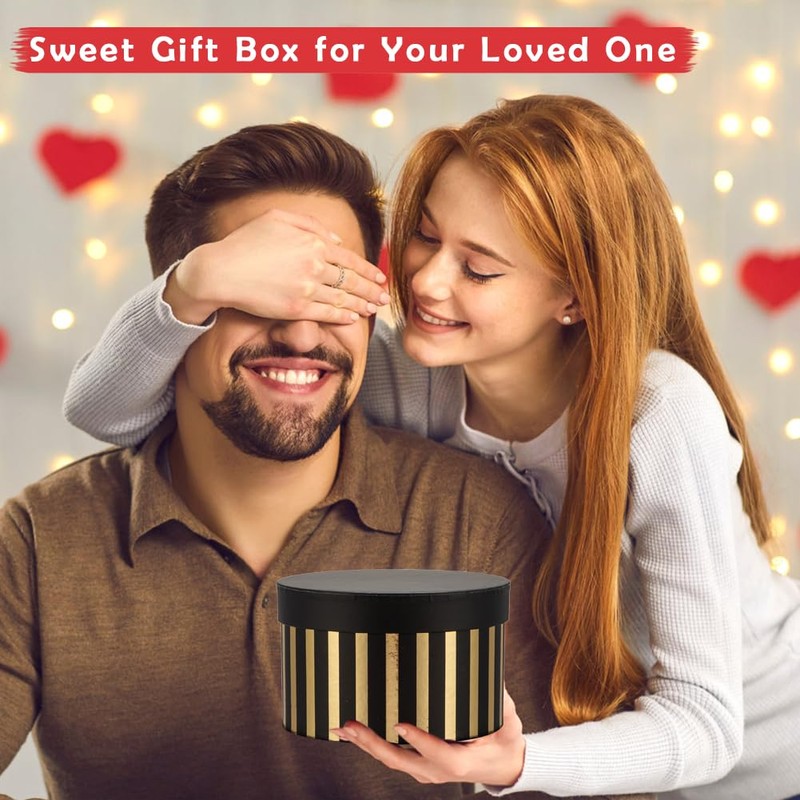 Oairse Gold and Black Stripes Flower Boxes for Arrangements Set of 4 Nesting Gift Boxes with Lids