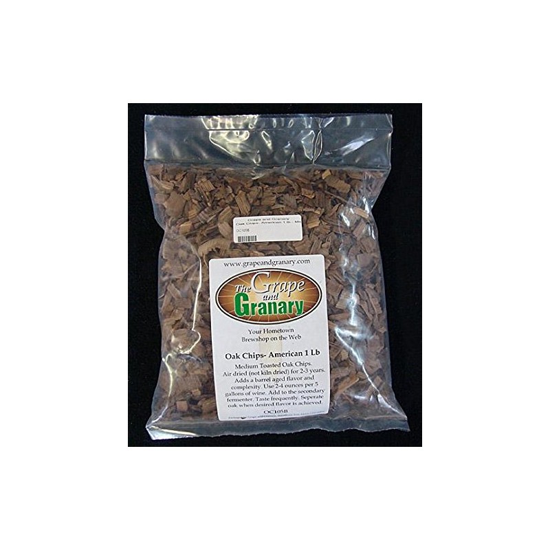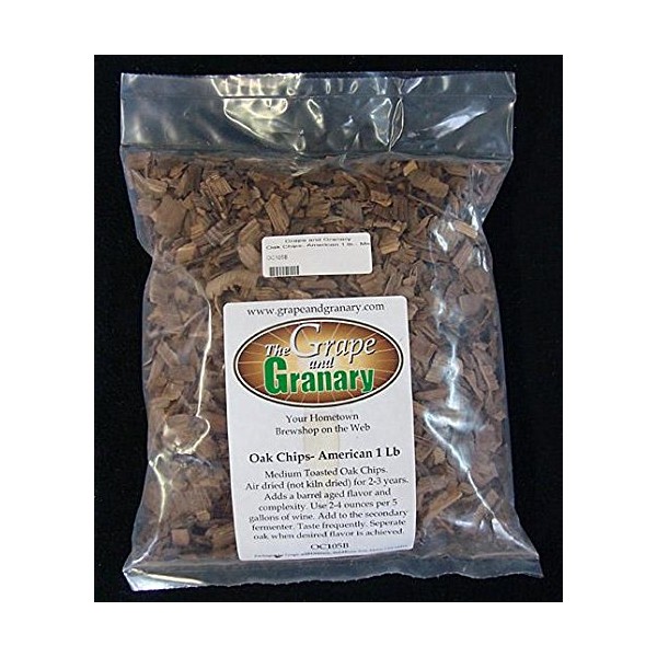 One pound bag of American Medium Toasted Oak Chips. Air dried (not kiln dried) for 2-3 years. Adds a barrel aged flavor. Use 2-4 oz per 5 gallons of wine in the secondary.