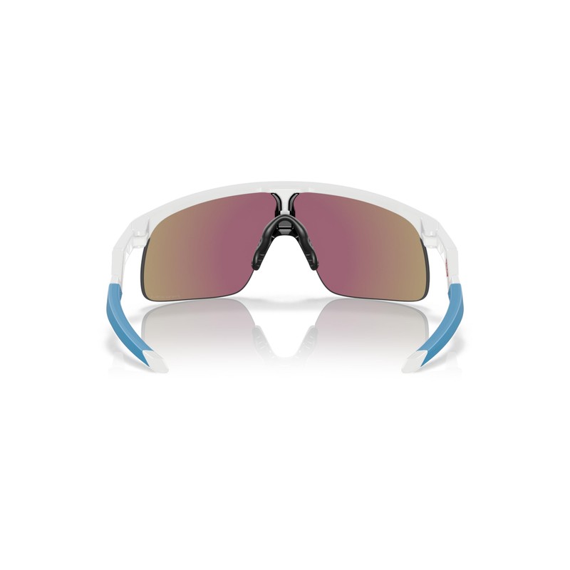 - FRAME FEATURES: OJ9010 Resistor sunglasses were designed with stem nesting on the temples inspired by resistors used in electrical circuits. The high-wrap shield lens mimics other classic styles from Oakley, while the O-matter frame balances flexibility and offers impact protection. They feature an oversized rectangular, polished white frame and Prizm sapphire lenses.