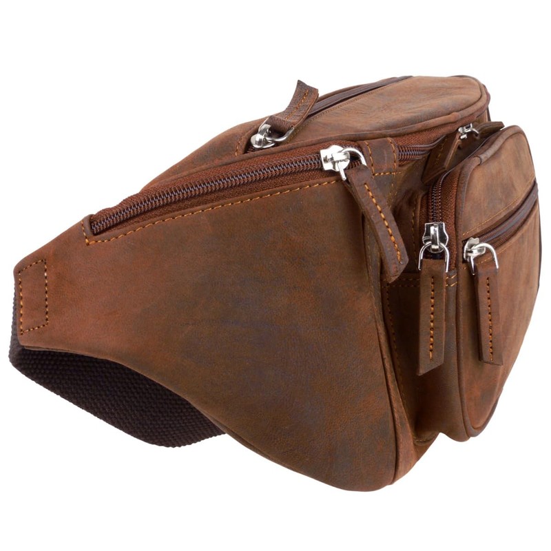 Oakridge Leather Mens Large 5 Pocket Bumbag - Brown Hunter