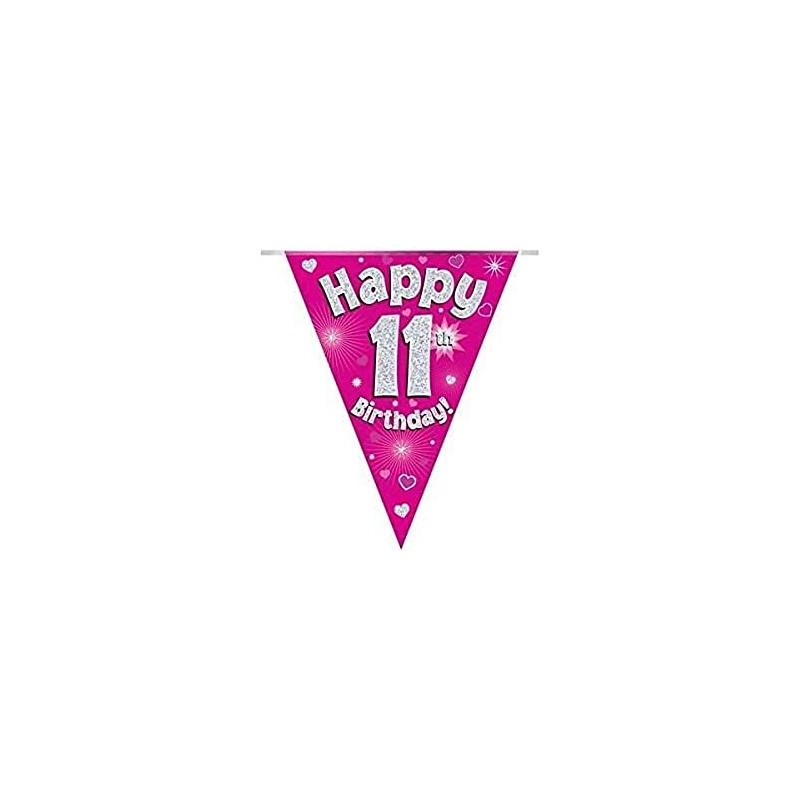 - Party Bunting Happy 11th Birthday Pink Holographic 11 flags 3.9m