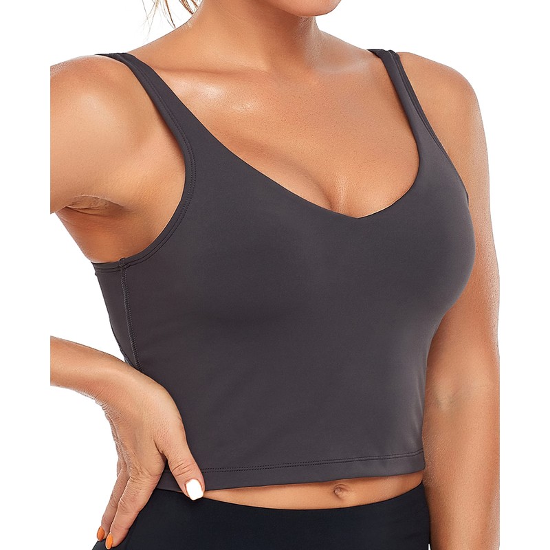 Oalka Sports Bra Womens Longline Padded Crop Tank Yoga Bras Workout Fitness Top Heart Charcoal S