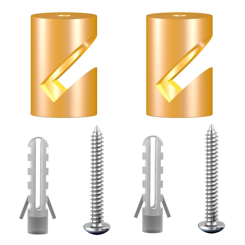 OASHISU Pack of 2 Aluminium Alloy Wall and Ceiling Pins "V-Style" Golden for Textile Cable Ceiling Mounting Monkey Swing Surface-Mounted Cable Holder for Lamp DIY with Screws and Dowels