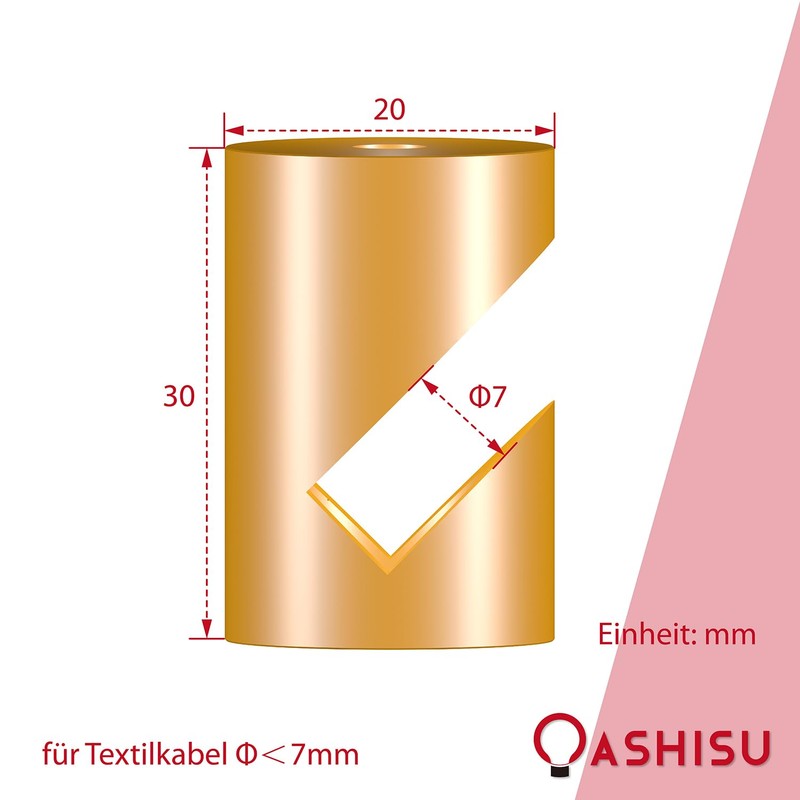 - Size: diameter 20 x height 30 mm, for textile cables up to diameter 7 mm