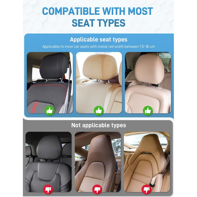 - 5. Universal Fit: Compatible with most car seats with metal headrest bars and an interior width between 7.5-15 cm. Before purchasing, please ensure your car seat has a removable metal bar.