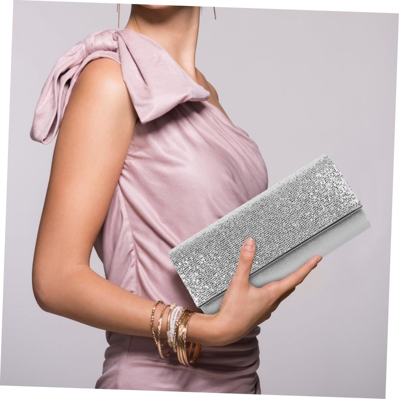 OATIPHO Women Evening Clutch Bag Sequins Pu Material Elegant Silver Design for Weddings Parties and Banquets Spacious Handbag for Essential Items