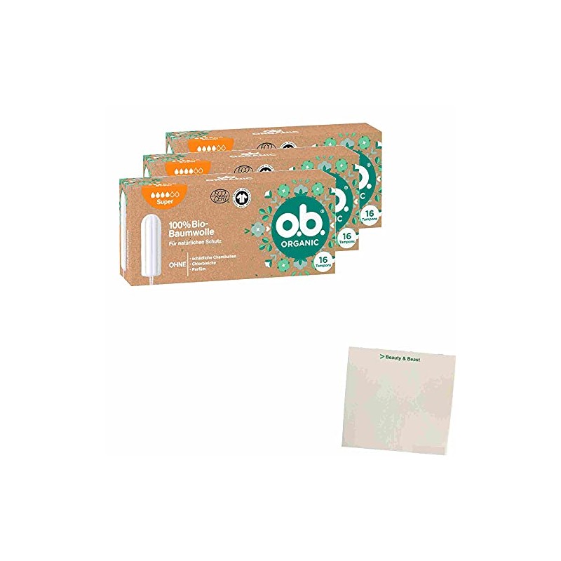 OB Organic Super Tampon Pack of 3 (3 x 16 Pieces) + usy Block
