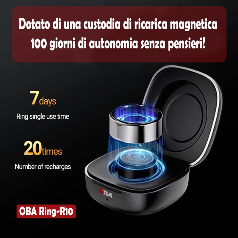 - Oba Ring-R10: Your ally for a healthier and more active life OBA Ring-R10 is the smart ring that allows you to monitor your health and athletic performance in a simple and intuitive way. Thanks to its advanced sensors, the OBA Ring-R10 provides you with accurate data: ceramic cover. Steps travelled distance, calories burned, heart rate, sleep quality, stress level, blood oxygen (SpO2), monitoring of the menstrual cycle