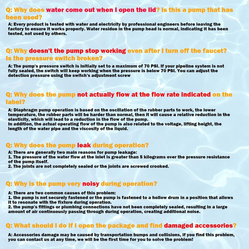 - [LOW NOISE OPERATION]: Equipped with high-quality double ball bearings and a unique one-piece 4-chamber diaphragm design, this pump operates quietly even at high flow rates, ensuring a comfortable user experience.