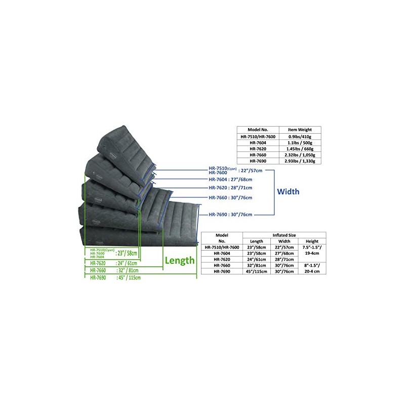 ObboMed HR-7510, cama en forma de cuña, inflable y portable con superficie de velvetón para dormir, viajar y vacaciones, 23 x 21 pulgadas x (7~1.8 pulgadas)