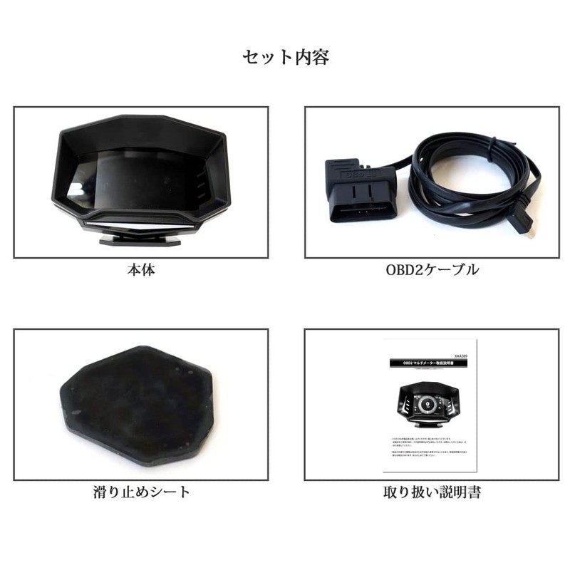 OBD2 XAA389 Multimeter, Tachometer, Boost Meter, HUD, Japanese Instruction Manual Included, Vehicle Speed, Engine Speed, Water Temperature Meter