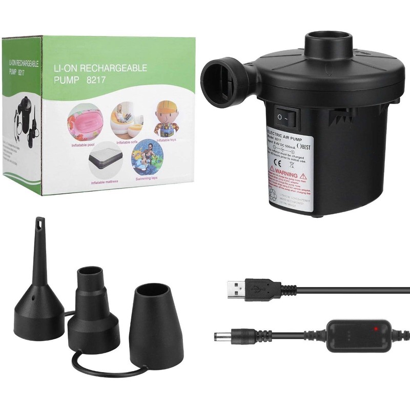 - 【Rechargeable Electric Air Pump】The electric air mattress pump has a 4000mAh rechargeable battery, with the USB type-C interface, electric air mattress inflator inflatable inflator can be charged by connecting to a power outlet, computer. Note: Portable inflate deflate make sure the voltage is 5V USB interface when charging.