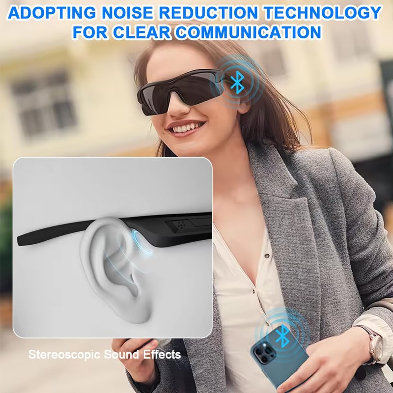 - Stable connection and clear communication: these Bluetooth glasses use an updated 5.2 Bluetooth chip, with faster transmission speed and stable communication without delay; thanks to the use of dual microphone noise reduction technology, excessive background noise can be effectively filtered out during calls
