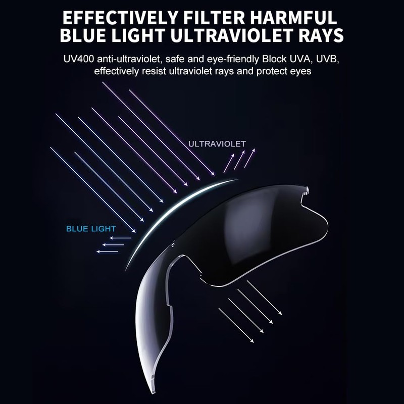 - Humanised design: sunglasses adopt a half-frame design, reduce the total weight and make them more comfortable to wear; rubber splicing mirror legs can be freely adjusted to the face shape, but do not fit the cheeks; Wrapped nose support, stable and non-slip