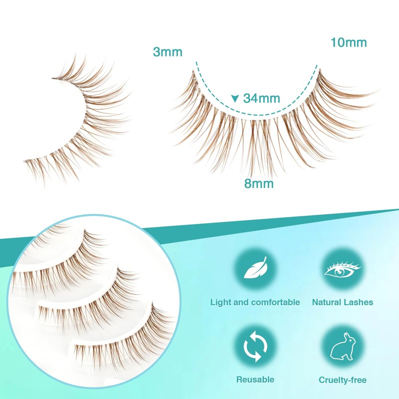 Obeyalash Brown Artificial Eyelashes, Natural Look, False Eyelashes, Wispy, 10 Pairs, Brown Eyelashes, Strip, C Curl Length, 5-10 mm, False Lashes, Soft and Comfortable by Obeyalash (Style-481)