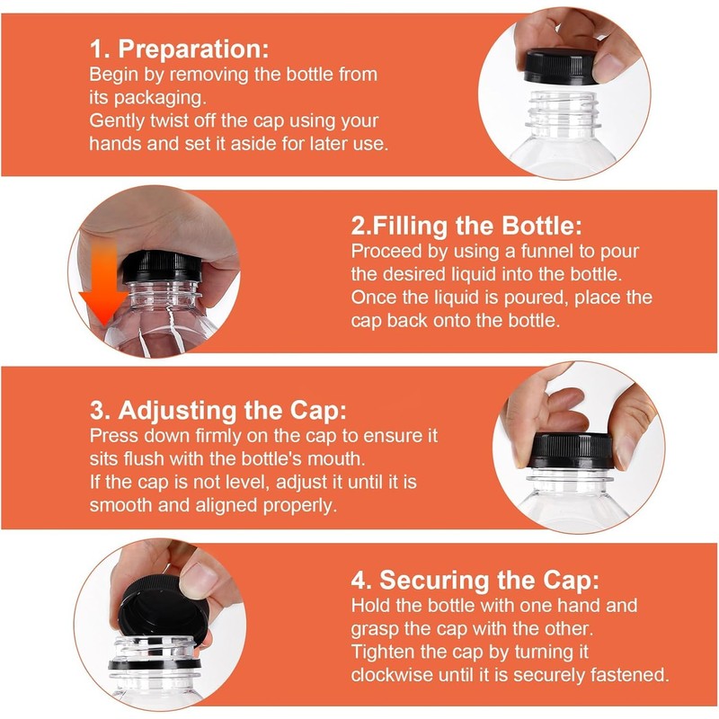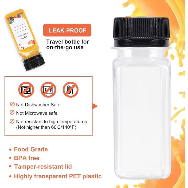 - Premium Material: To make you and your family feel more at ease when using juice containers, the food-grade PET material, safe and odorless meanwhile is more durable in daily use, ensuring juice bottles with caps are easy to clean and reusable, suitable for use in daily life